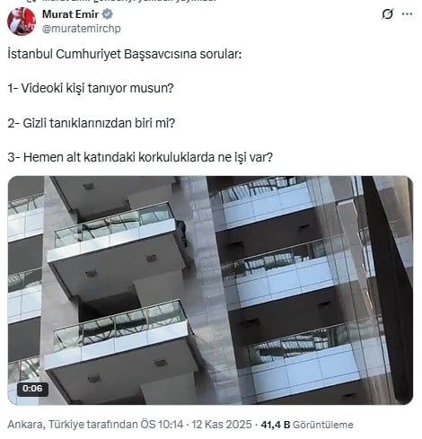 CHP’li Emir’in paylaşımı kısa sürede sosyal medyada gündem olurken, videoda yer alan kişinin kimliğine ve iddianın doğruluğuna ilişkin resmi bir açıklama yapılmadı.